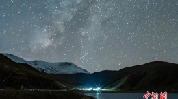 银河璀璨 狮子座流星划过西藏羊湖上空